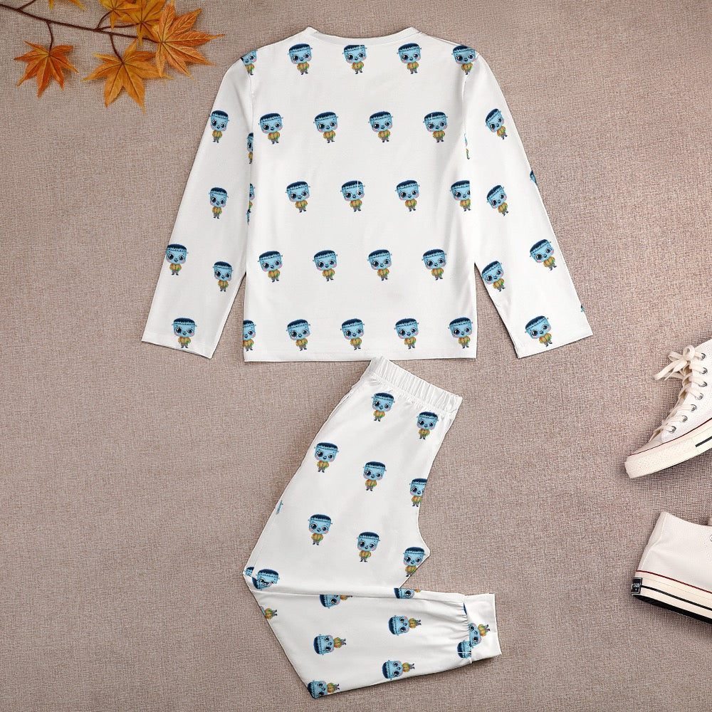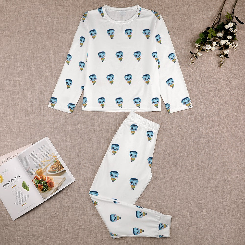 Turn bedtime into a spook-tacular adventure with my adorable Frankenstein character pajama set! Featuring the cutest little green monster friend scattered across soft white fabric, this cozy two-piece set proves that even the sweetest dreams can have a playful spooky twist.